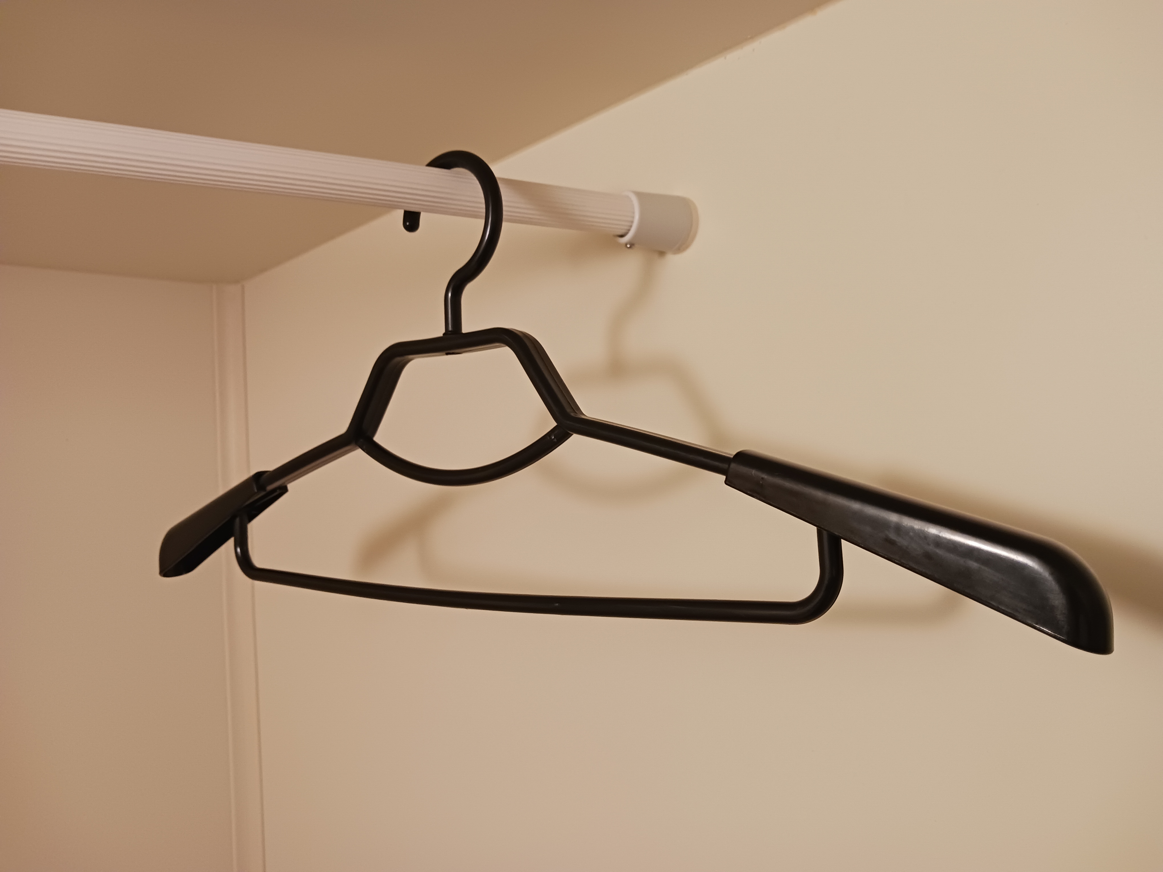 私が愛用しているハンガーが2つあります。1つ目が型崩れしないハンガーでおなじみマワハンガーです。(左画像)見た目もシンプルで型崩れの心配もいりません。収納力にも優れているので おすすめです。2つ目は伸縮式のハンガーになります。(右画像)伸縮式のハンガーはニトリや百均ショップなどで多く扱われていますが、私は、老舗ハンガーメーカー シンコハンガー の伸縮 式ハンガーを利用しています。私なりのズボンの干し方をする時にこの伸縮部が大活躍します。
